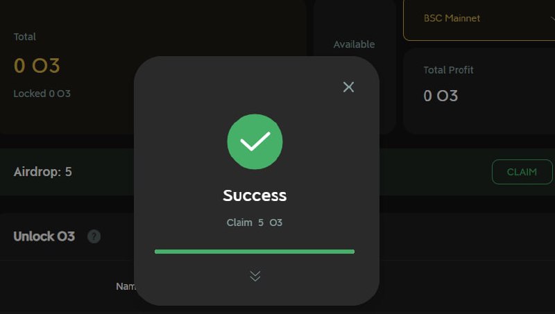 На разблокировку базовых 5 токенов O3 с аирдропа нужно примерно 40 баксов - 20 BUSD и 2,89 O3, то есть чуть больше, чем стоит сам аирдроп.