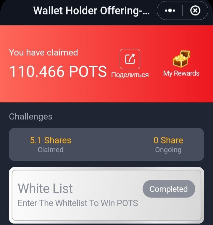 WHO-аирдроп от SafePal и Moonpot окончен 🔚 ✔️Итоговое количество ваших Shares за выполненные задания и рефералов уже должно отображаться на страничке WHO с пометкой Claimed. ✔️Окончательный подсчет количества токенов POTS, которые дадут на каждую shares…