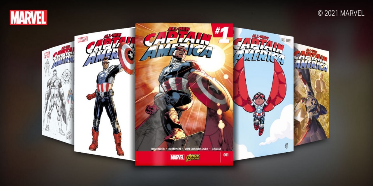 Новый дроп от VeVe по лицензии Marvel, посвященный первому появлению в комиксах Сэма Уилсона (Сокола) в качестве Капитана Америка.