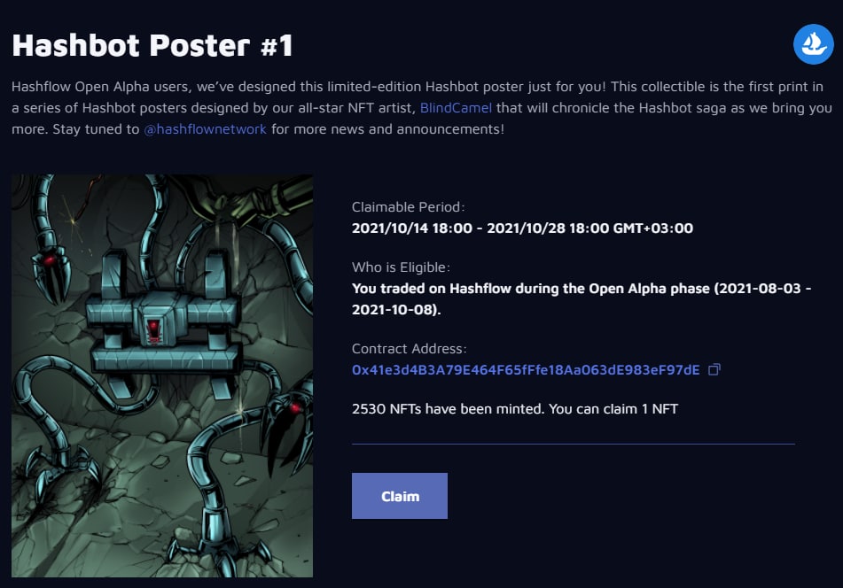 Если вы свапали на Hashflow в период с 03 августа по 08 октября, можете заклеймить NFT-постер здесь: