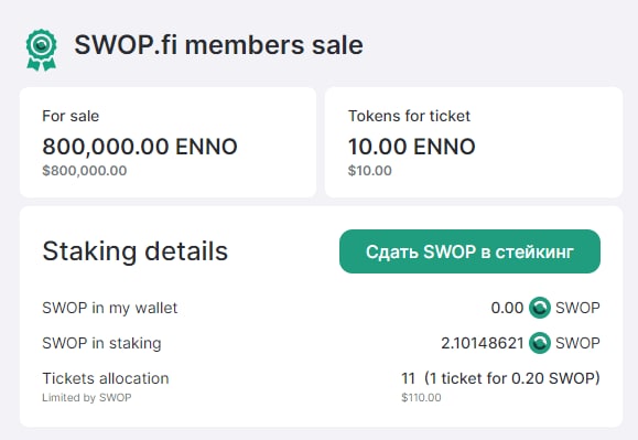 ✔️Для участия нужно застейкать токены SWOP - за каждые 0,2 SWOP получаем 1 билет
