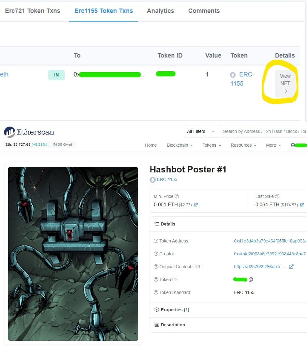 #минидайджест🟣 На Etherscan.io появилась встроенная функция визуального просмотра NFT в кошельках, с детальной информацией и историей продаж (на вкладках Erc721 и Erc1155 Token Txns).