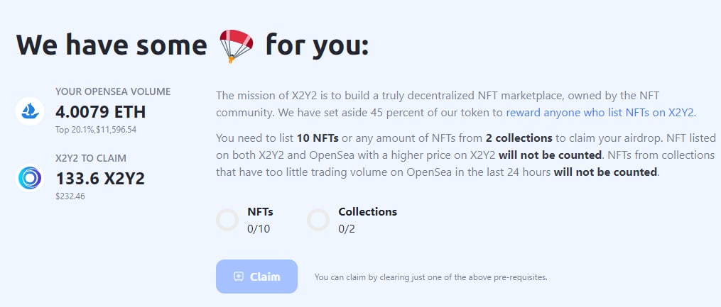 Новый NFT-маркетплейс X2Y2 раздает ретроактивный аирдроп активным торговцам Opensea.io🐳