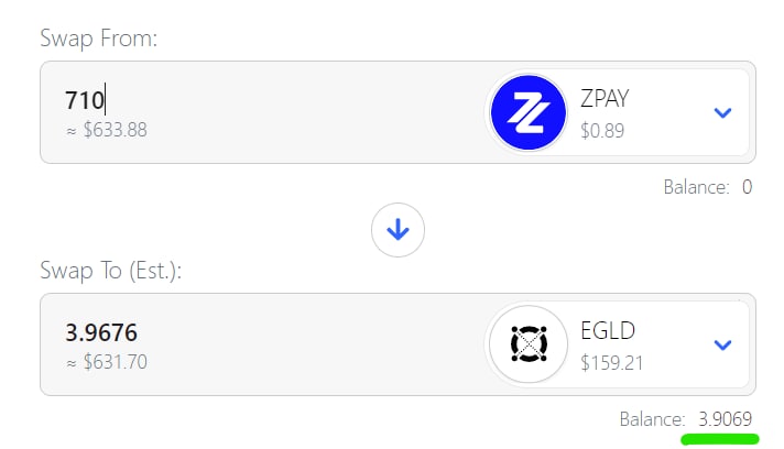 ✔️обмениваем полученные ZPAY на EGLD через Maiar-свапалку: