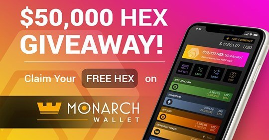 3. На вкладке Wallet в самом верху нажимаем на баннер $50000 HEX Giveaway, затем Claim hex и Done.