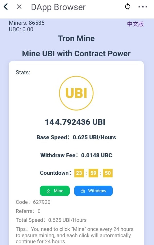 ❗️Важный нюанс - для вывода нужно оплатить комиссию в монетке UBC🤪 Размер комиссии отображается над таймером в строке Withdraw Fee. Купить эти монетки можно на #JustSwap в паре TRX-UBC.