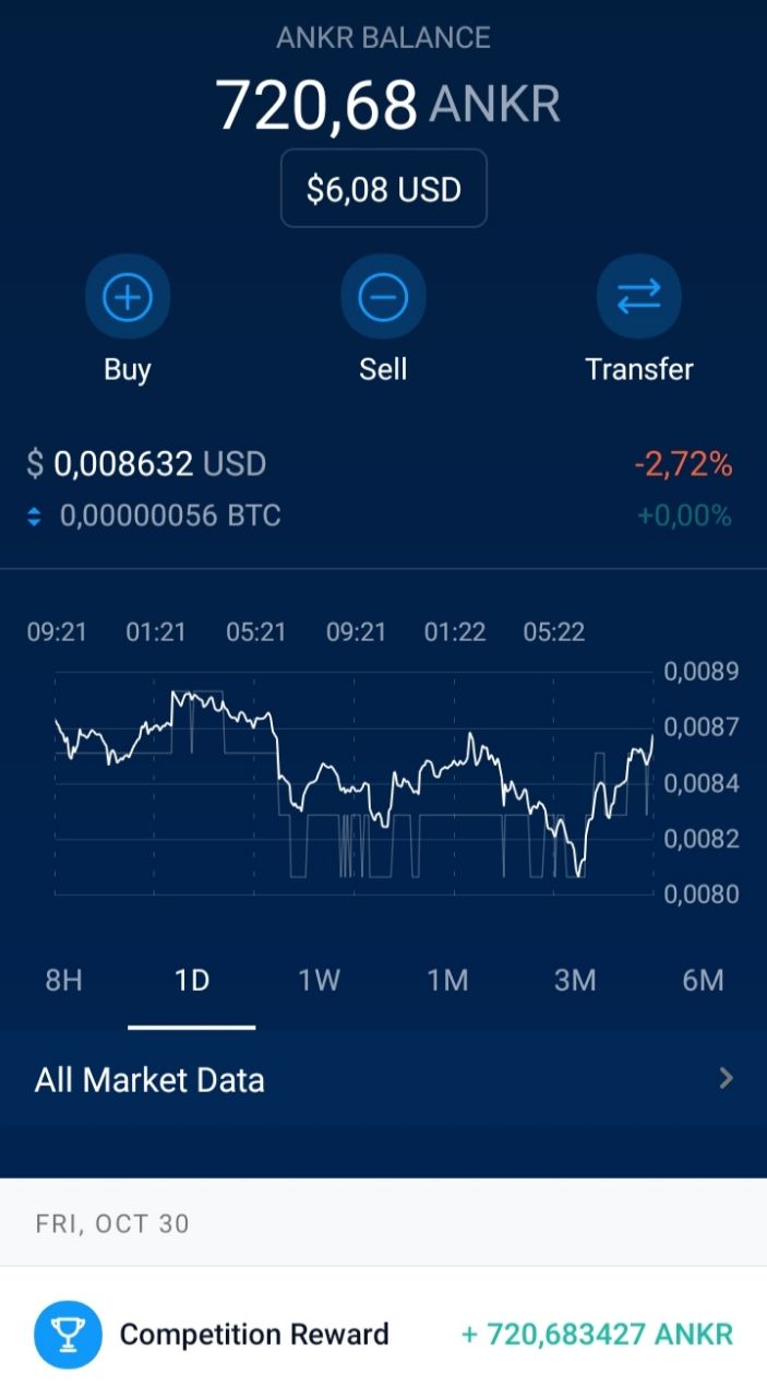 Кто регался в приложении Crypto_com и стейкал 1000 CRO с 13 по 20 октября, проверяйте - у вас тоже должно быть 720 ANKR на балансе.