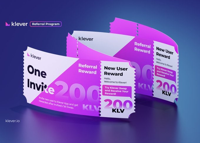 По желанию приглашаем друзей по своей реферальной ссылке и получайте дополнительно по 200 KLV за каждого из них, когда они сделают свой первый свап в приложении😋