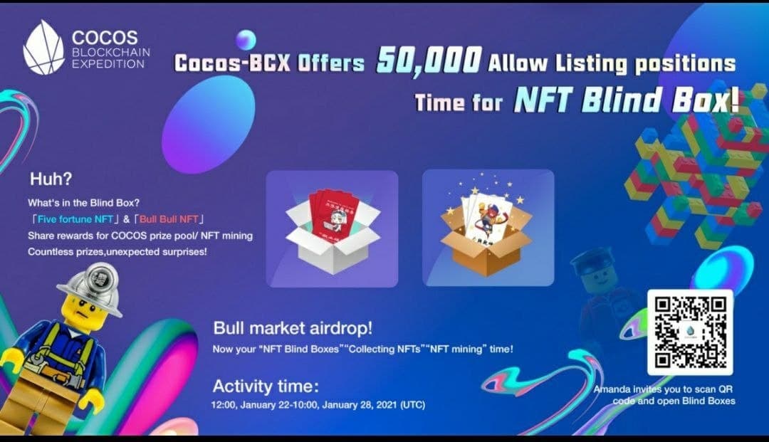 Тот же самый Cocos, баунти которого мы уже проходим, и который уже в денонимированном виде завтра должен начать торговаться на #Binance и других биржах, проводит раздачу своих NFT.
