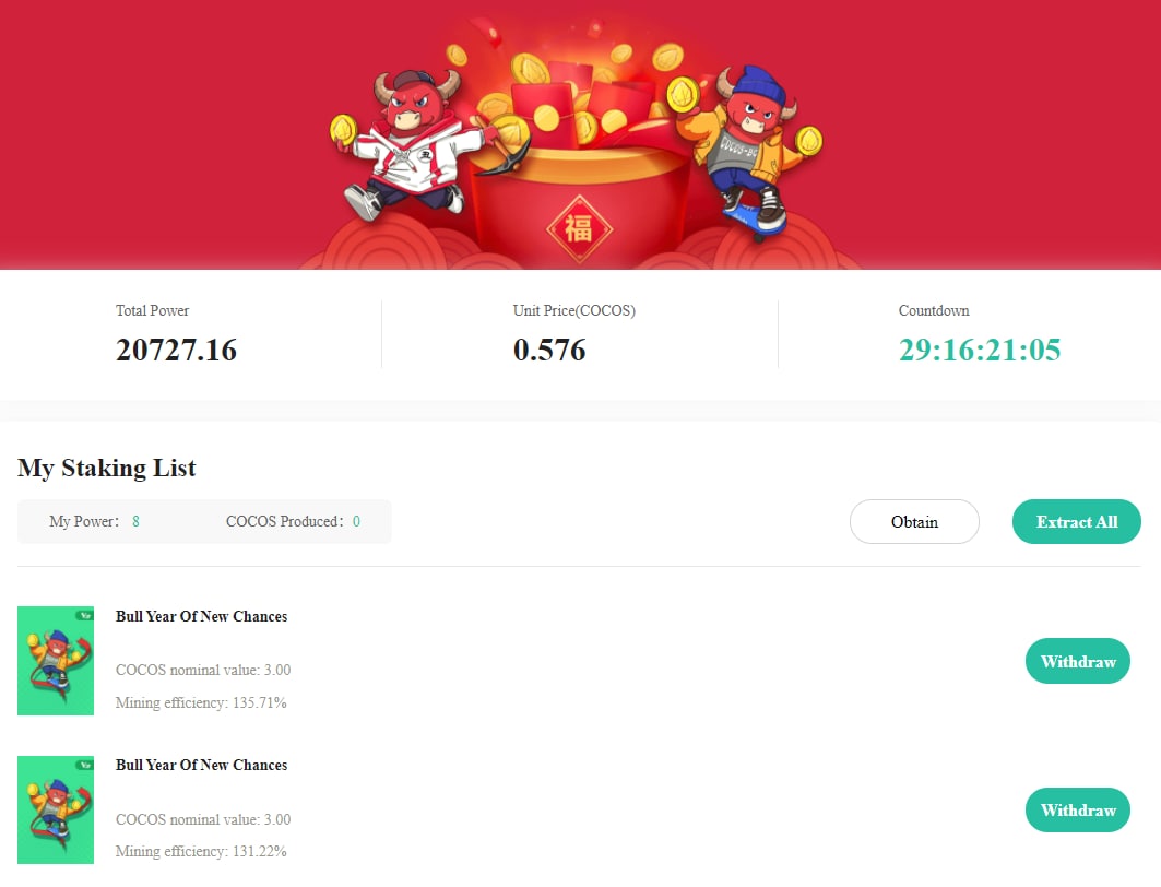 После этого в течение месяца вы сможете майнить токены COCOS - производительность будет зависеть от уровня NFT и количества участников пула🙃