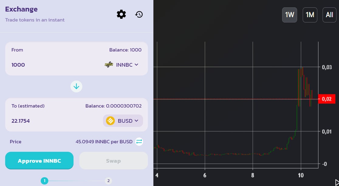 Но неделю назад они запустили свою свапалку (полная копия PancakeSwap) и токен INNBC за неделю вырос в цене в 5 раз.