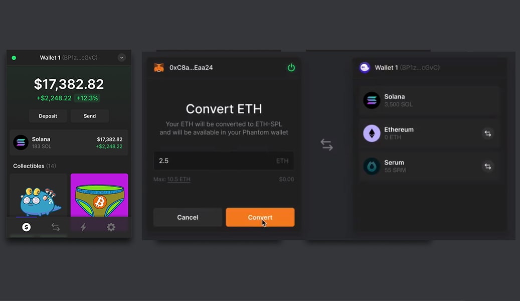 Phantom - новый криптокошелек для блокчейна Solana c возможностью перевода токенов из сети Ethereum.