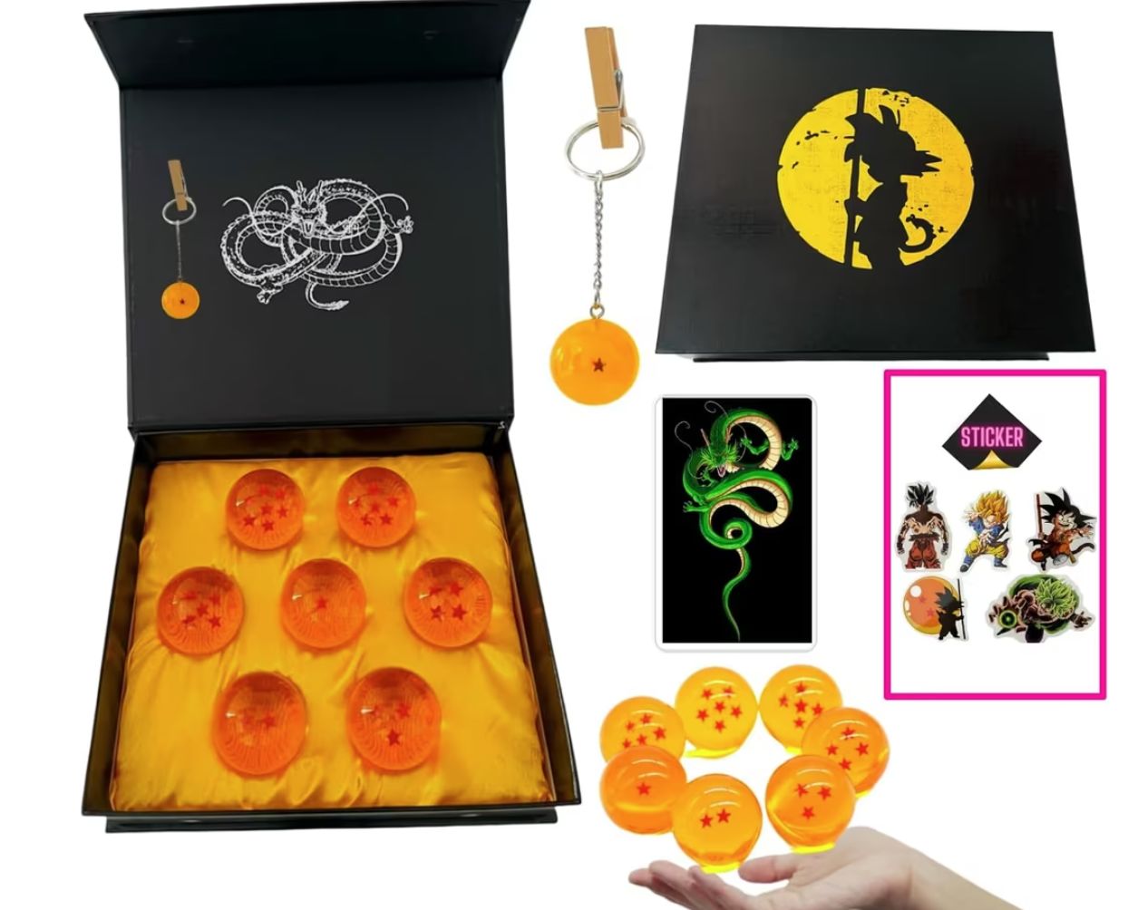 β¨ Esferas acrΓlicas de 4.3 cm (1-7 estrellas) con caja expositora, incluye llavero, pegatinas y tarjeta de invocaciΓ³n