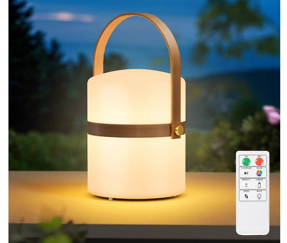 β¨ Precio rebajado para esta lΓ‘mpara ideal para poner en el exterior. Es inalΓ‘mbrica y lleva asa y mando a distancia para controlar el encendido y los colores (8 disponibles)