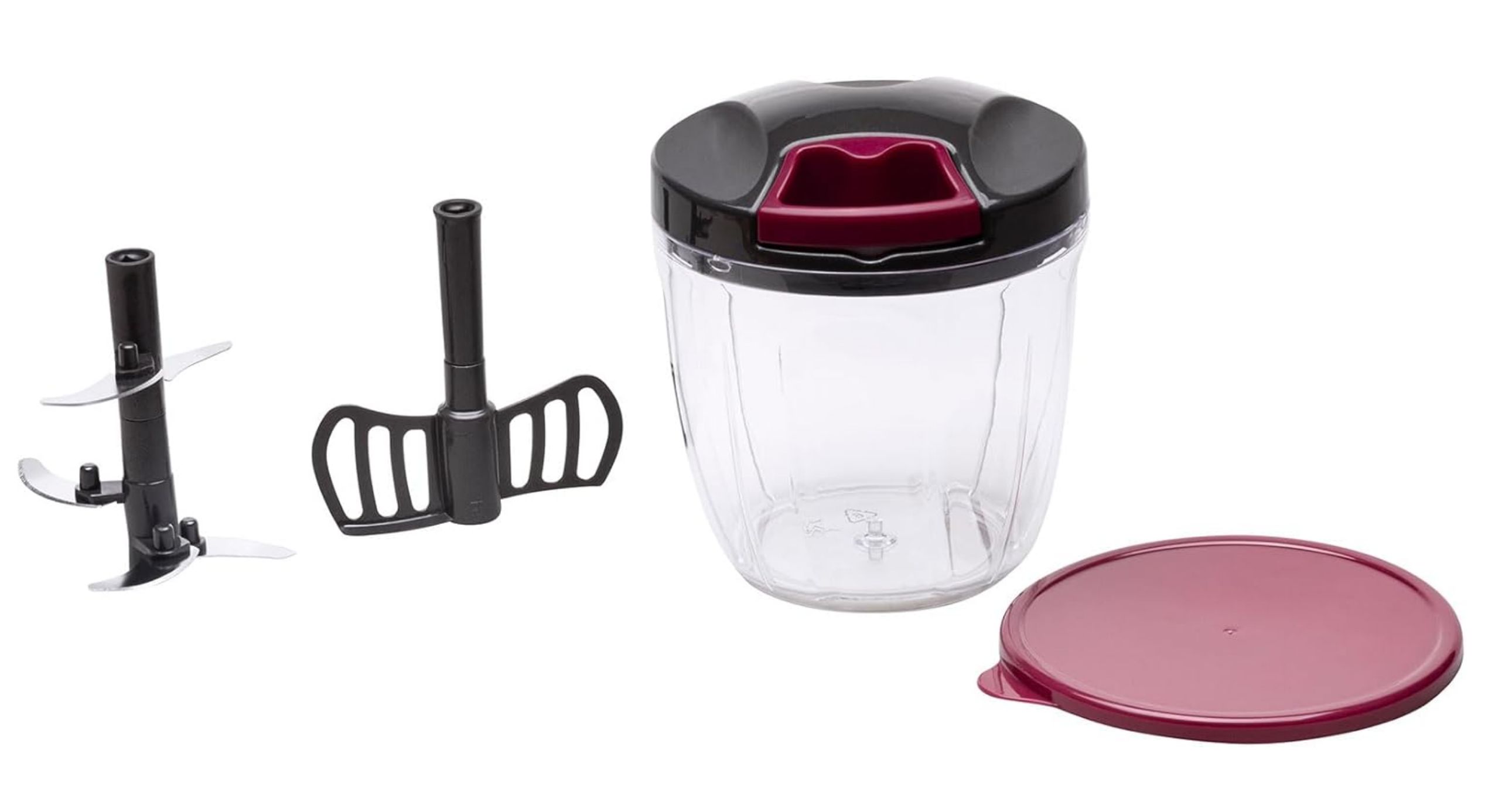 โจ 4 alturas de corte. Cuchilla de acero inox. 900 ml de capacidad. Incluye tapa y pala para batir