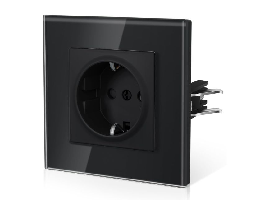 โจ Enchufe empotrable con frontal de cristal, instalaciรณn con garfio sin destornillador y seguridad infantil integrada