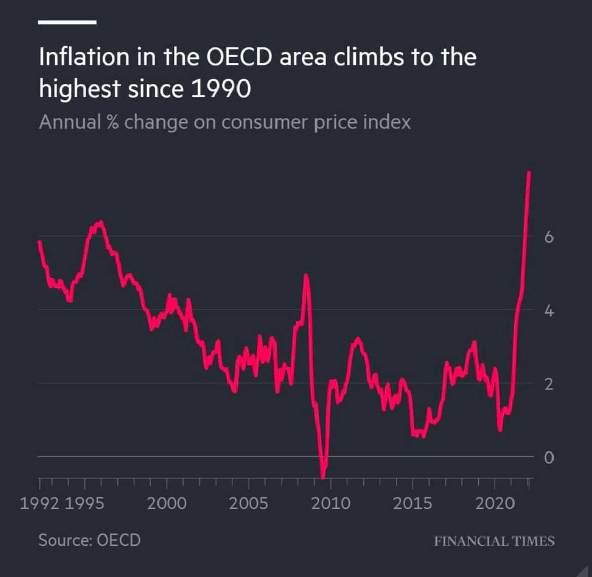 📈Инфляция в богатых странах достигла максимального значения с 90-х годов.