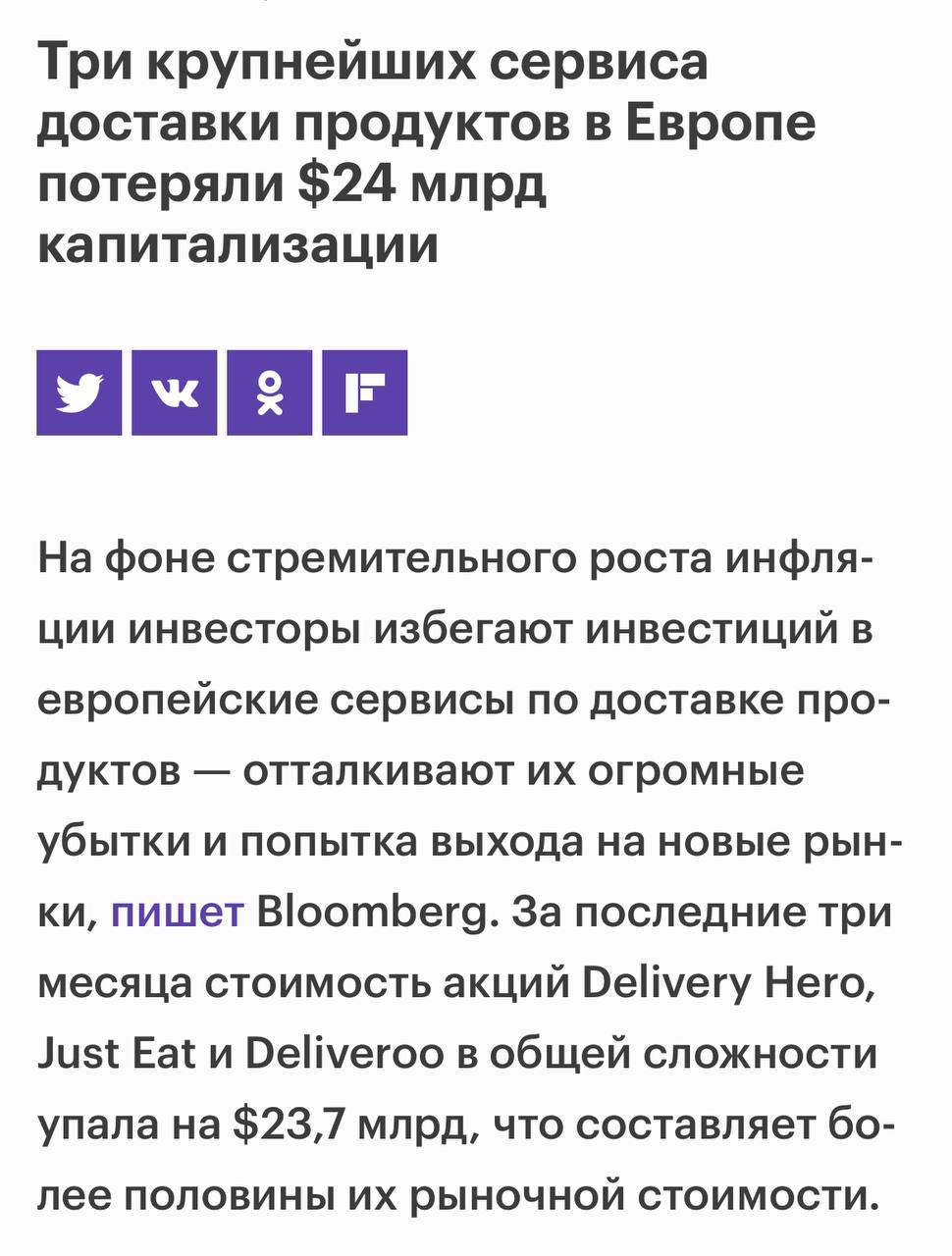 И о доставке 👇🏻. По сути рынок доставщиков не был пузырем, но он был переоценён в силу стремительного пандемийного роста. Покупатель сметал все, не разбираясь в цене и нюансах, а компании показывали быстрый рост акционерам.