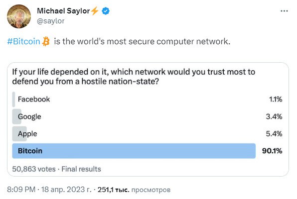 📊 Опрос Майкла Сейлора относительно сети с самым большим доверием можно было и не проводить, т.к. результаты были бы понятны сразу