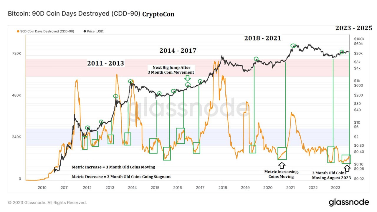 🤔 В сети Биткоина пришли в движение 90-дневные монеты (индикатор SDD)