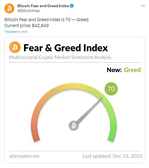 🧭 Индекс страха и жадности по Биткоину достиг уровня 70 (Жадность)