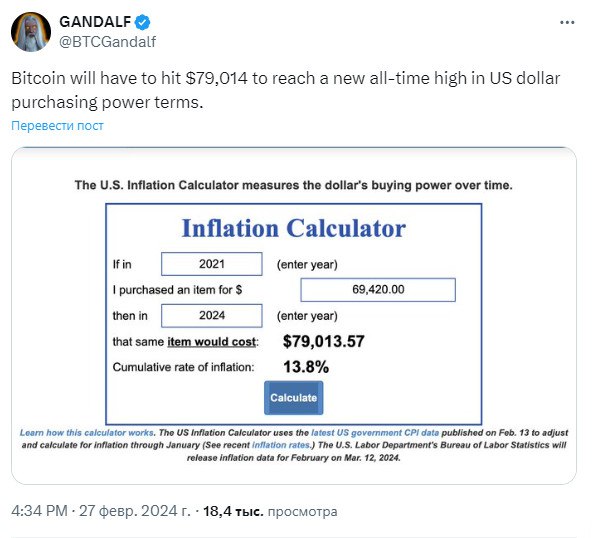Те деньги, которые нужно было потратить на покупку биткоина по цене прошлого АТН, уже не имеют той же самой покупательной способности
