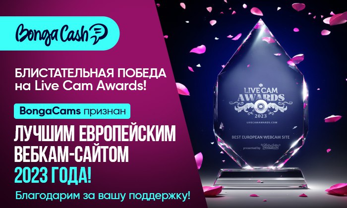 С гордостью сообщаем, что BongaCams одержал победу на Live Cam Awards 2023 в номинации «Лучший европейский вебкам-сайт»!