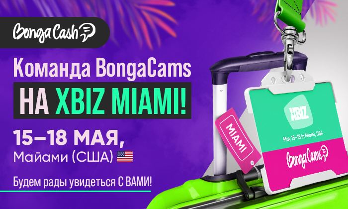 Спешим сообщить, что с 15 по 18 мая команда BongaCams примет участие в одном из крупнейших событий в вебкам-индустрии – саммите XBIZ, который пройдёт в Майами (США)!