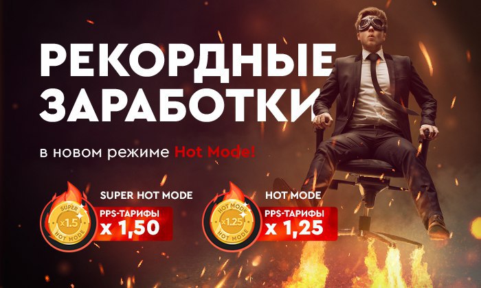 Представляем вам новый режим Hot Mode! Активируйте его, чтобы повысить свои PPS-тарифы в 1,25 раза!