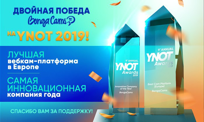 BongaCams стал лучшей вебкам-платформой в Европе, а также признан самой инновационной компанией года по версии YNOT Awards 2019!