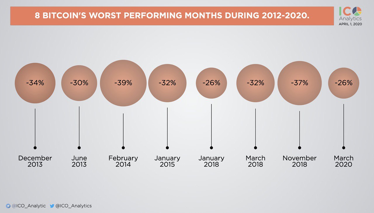 March has traditionally been the worst month for Bitcoin. This year was not an exception. 8 Bitcoin’s worst performing months during 2012-2020.