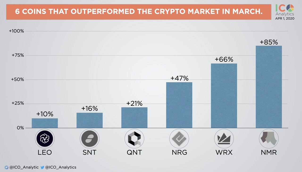 6 coins with market capitalisation over $10M USD that outperformed the crypto market in March.
