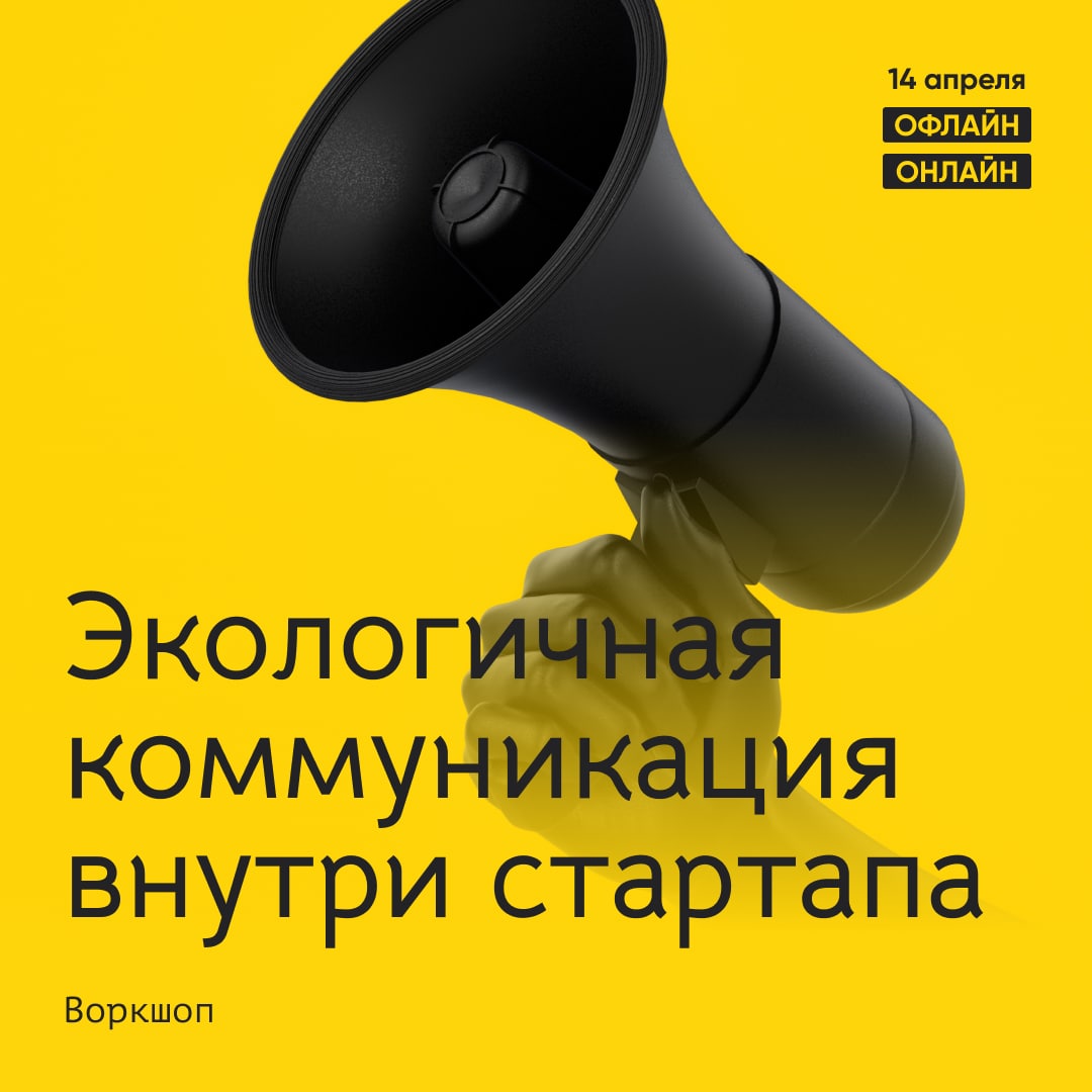 ☀️14 апреля. Воркшоп «Экологичная коммуникация внутри стартапа». Что делать лидеру, если между членами его команды появилось недопонимание? В коллективе стала проявляться токсичная обстановка? Во время воркшопа эксперт научит основателей технологических компаний развивать необходимые для экологичной коммуникации навыки и мышление.