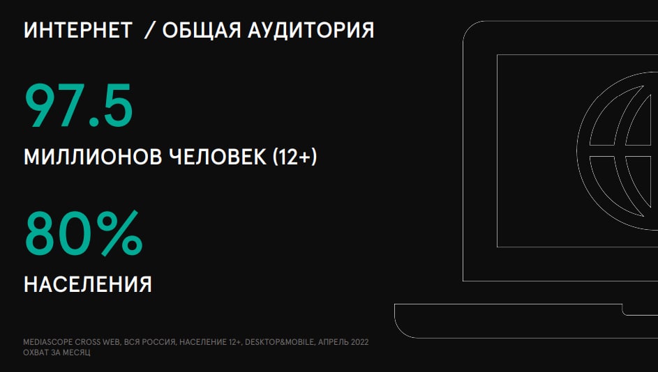 🔺97.5 млн человек (80% населения) — общая интернет-аудитория