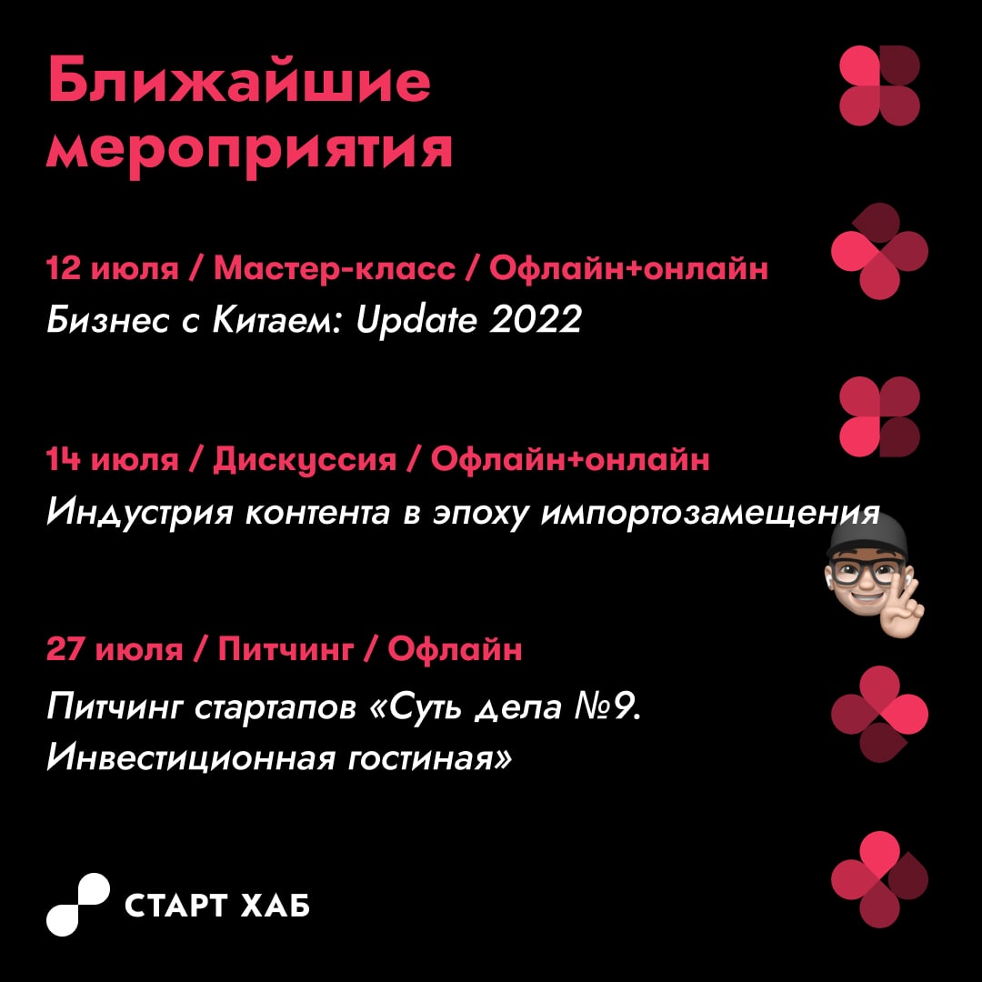 Планируем рабочую неделю с дайджестом мероприятий Технохаба Старт Хаб. Изучайте, выбирайте, регистрируйтесь и не пропускайте.