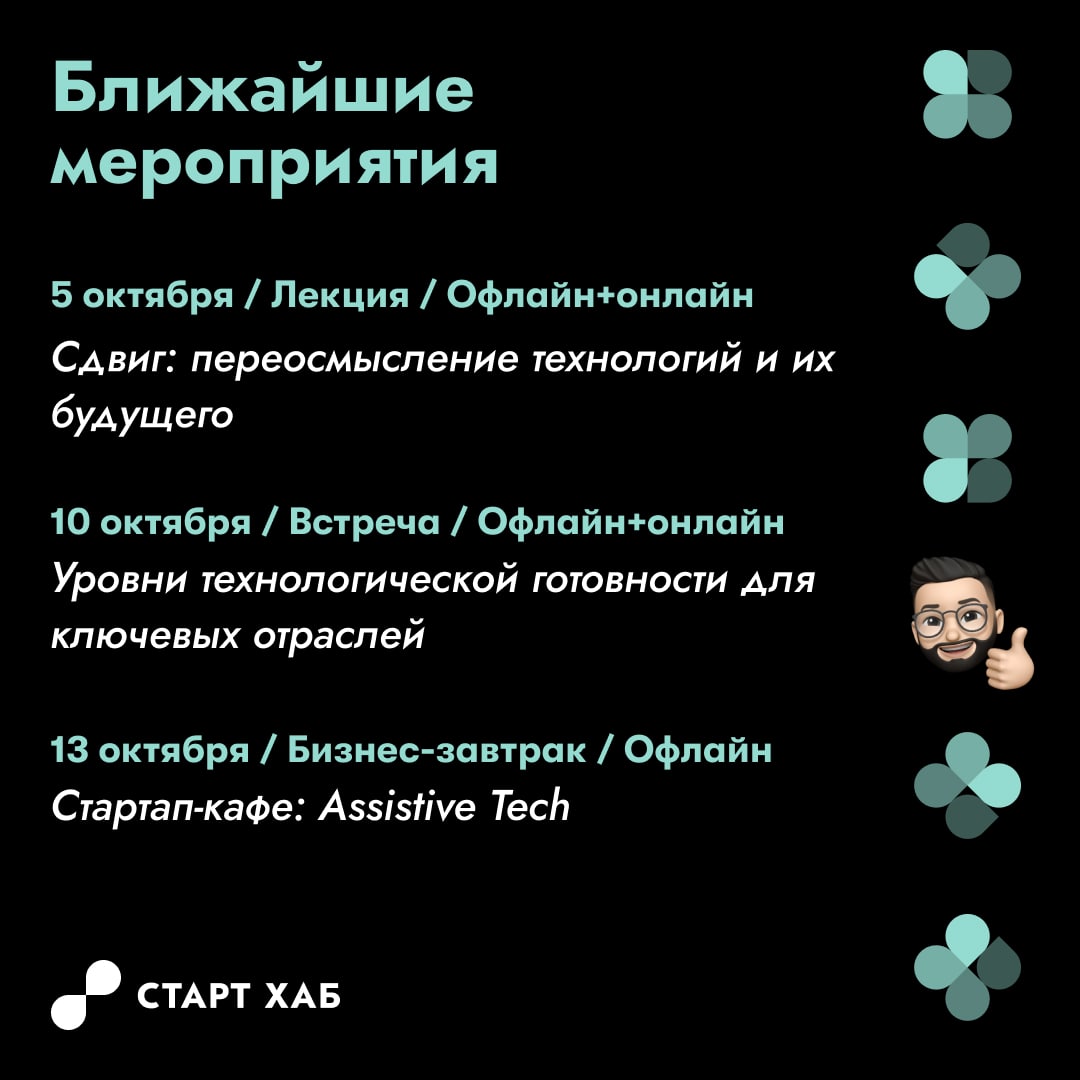 В эфире дайджест ближайших мероприятий Технохаба Старт Хаб🚀 Изучайте, выбирайте, регистрируйтесь, не пропускайте!