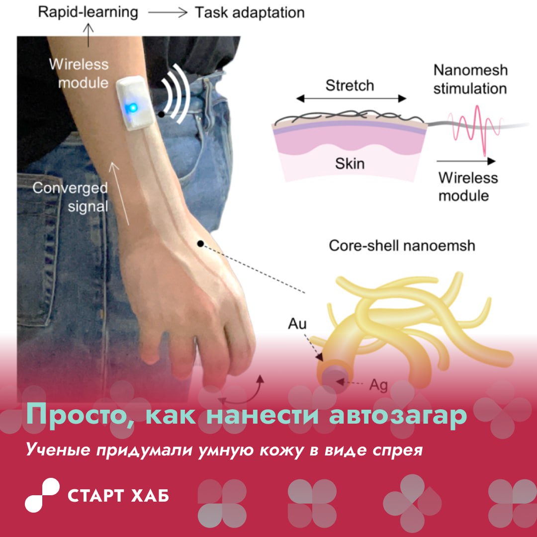 Группа исследователей Стэнфордского университета, Корейского института передовых технологий, Сеульского национального университета и Университета Конкук придумала умную кожу, которая наносится распылением.