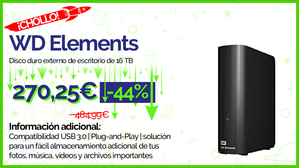 💥 🔉 WD Elements - Disco duro externo de escritorio de 16 TB #Amazon