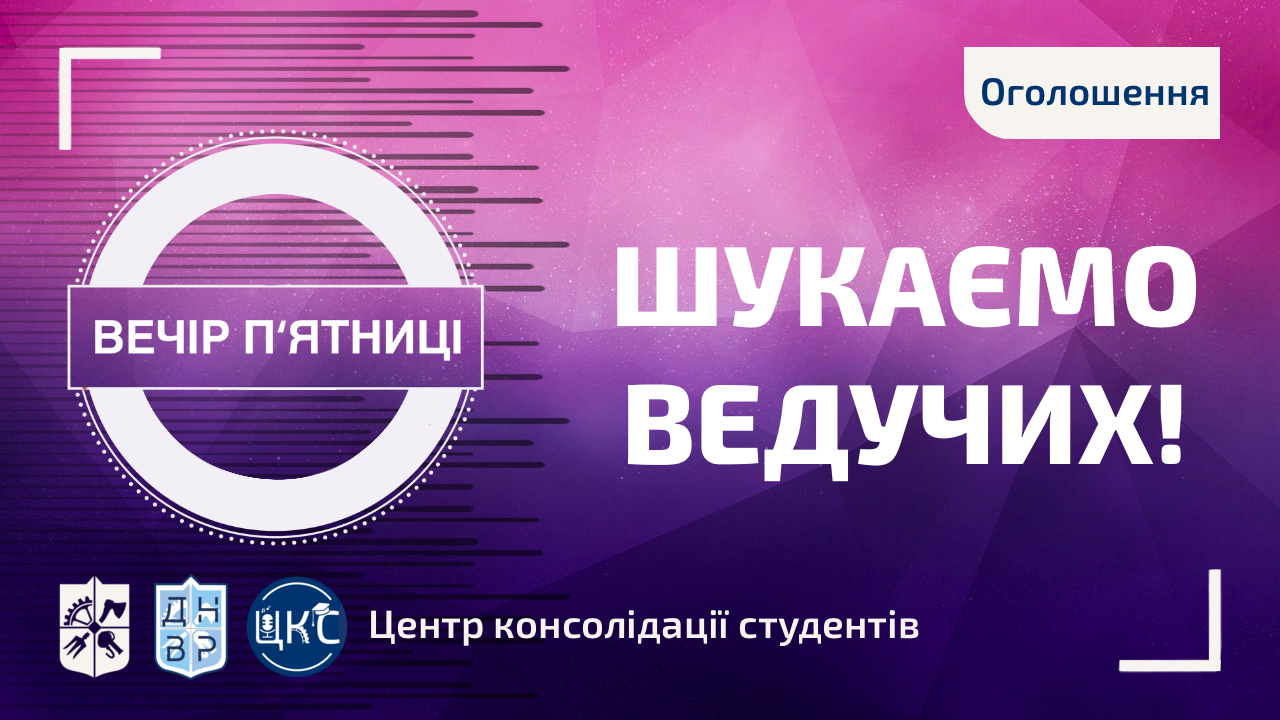 🔸 Центр консолідації студентів проводить багато різних заходів для яких потрібні не лише музиканти та вокалісти, а й ведучі. Якщо ти маєш гарну дикцію, запальний характер та хочеш отримати досвід у веденні заходів — заповнюй форму!