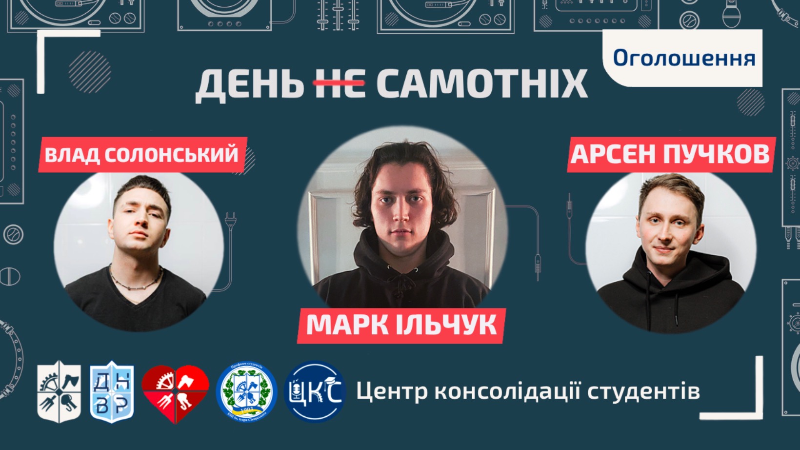 🔸 Вже сьогодні на вас чекає чудова музика, запрошені гості та жарти від наших улюблених КПІшників. До проведення заходу приєднається Марк Ільчук, Влад Солонський та Арсен Пучков. Долучайтесь, буде весело!