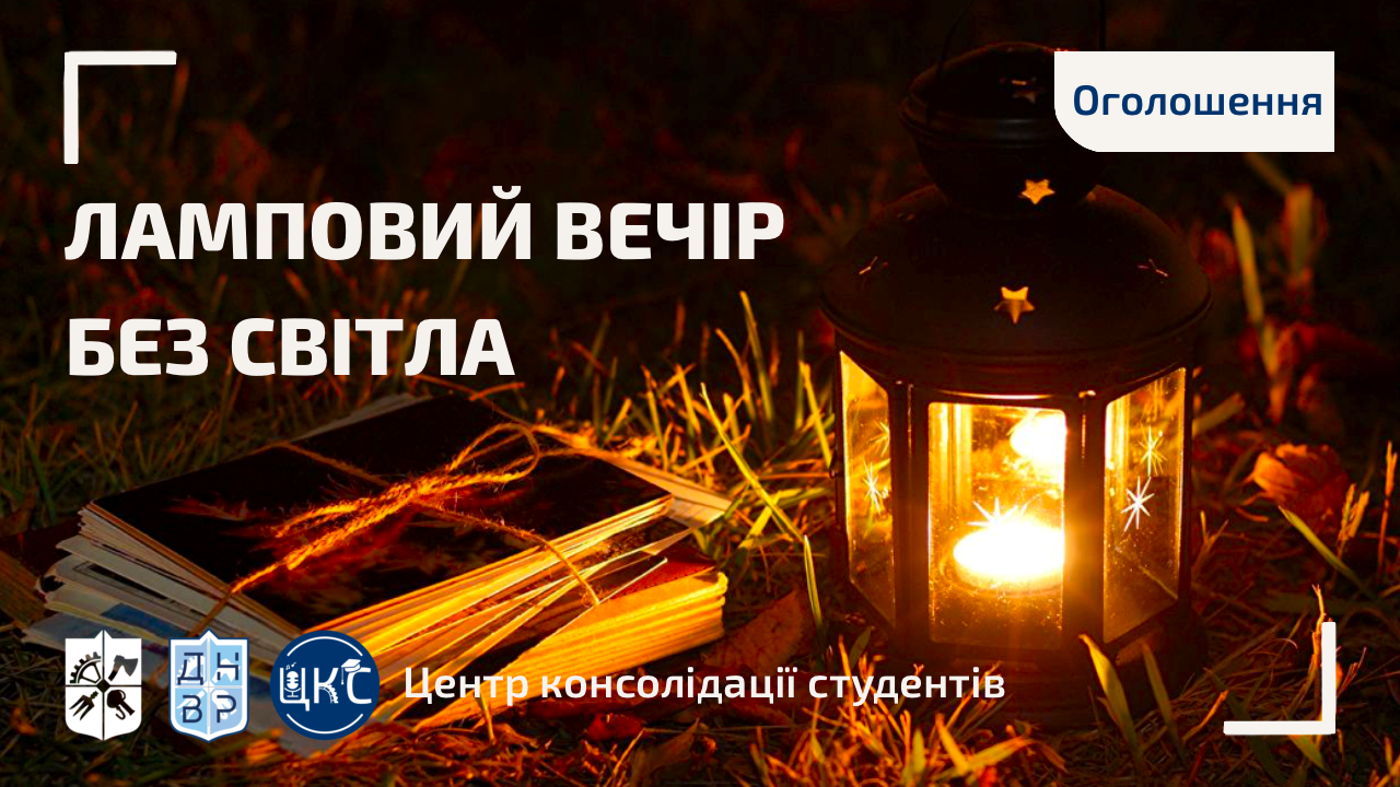 🔸 Приходьте в Центр консолідації студентів випити чаю, пограти в ігри, послухати музику та гуртом поспівати улюблені пісні. Давайте разом зустрінемо ще один вечір без світла.