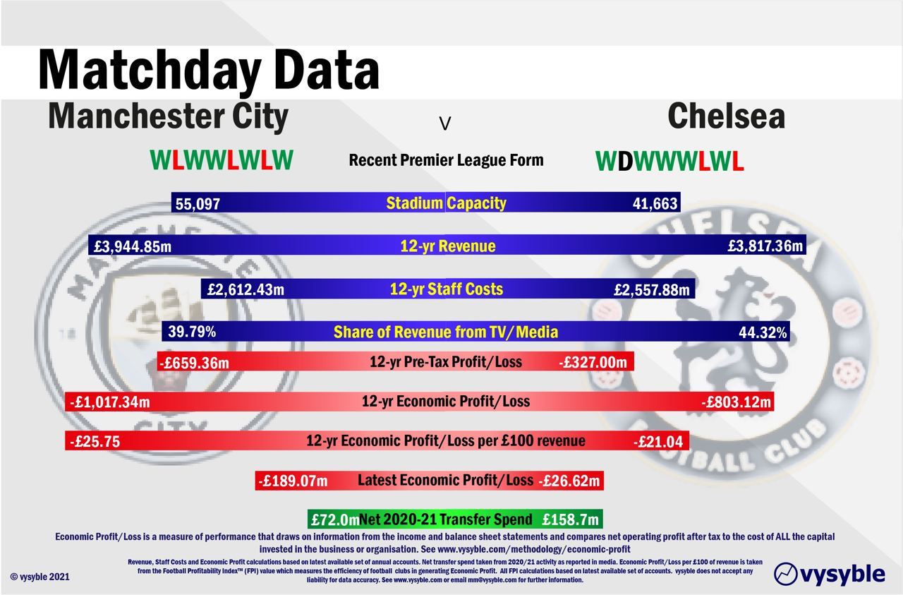 В финансовом поле клубы почти идентичны. 12-летняя выручка лишь на 100 миллионов фунтов больше у «Манчестер Сити». Учитывая, что за этот срок клубы заработали около 4 млрд фунтов – мелочь. Это говорит о примерно равном интересе болельщиков к обоим финалистам. А наличие у «Сити» стадиона, который почти на 15 тысяч больше, как раз может определять эту разницу в доходах на долгом промежутке времени.