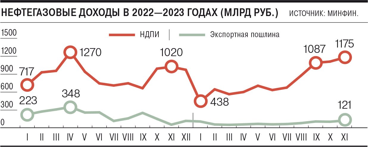 При этом размер нефтегазовых доходов РФ в январе — ноябре 2023 года снизился до 8,172 трлн рублей против 10,655 трлн рублей годом ранее. То есть падение составило 23,3%.