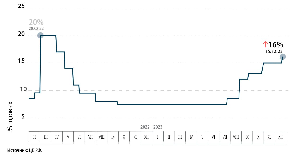 ⚡️Банк России, как мы и предполагали, повысил ключевую ставку на 1% до 16%.
