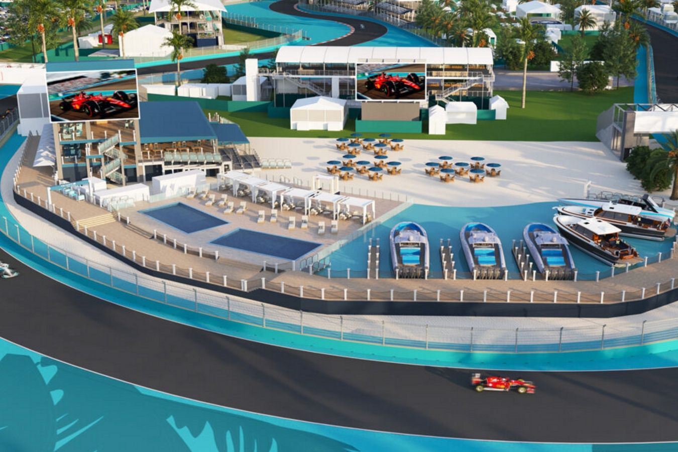 На Гран-при Майами добавят к фейковой бухте реальные бассейны. Фото