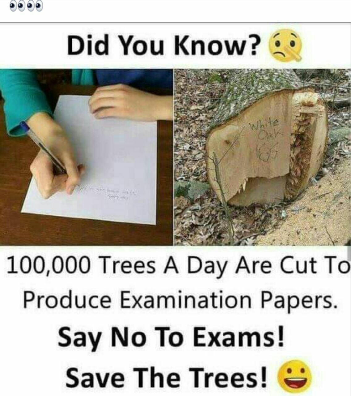 Imtihon qog'ozlari uchun 1 kunda 100000 ta daraxt kesilarkan.