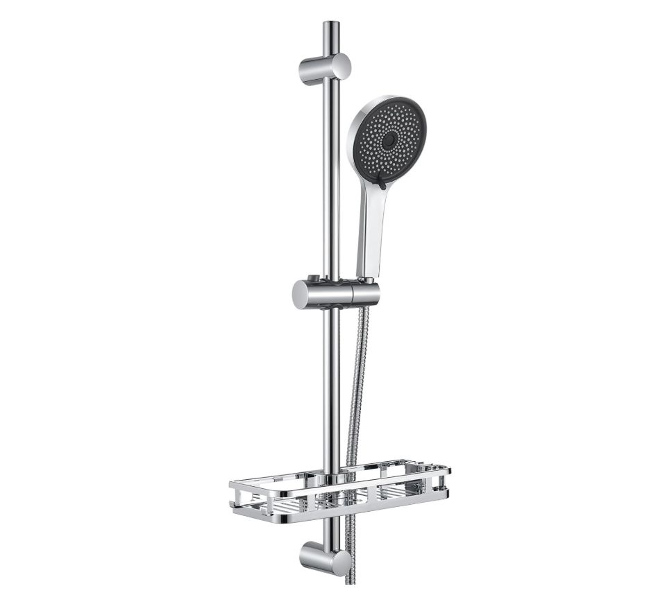 β¨ Columna de ducha sin grifo con soporte ajustable y giratorio 360Β°, alcachofa antical de 5 modos, flexo de 150 cm y estante ABS anticorrosiΓ³n sin taladrar