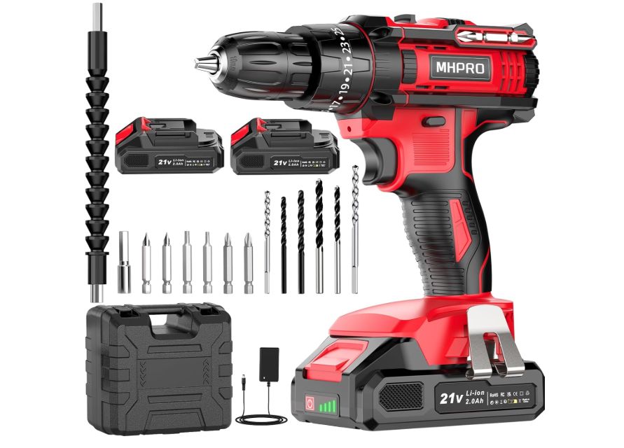 β¨ Taladro percutor y atornillador de 21V que incluye 2 baterΓas de 2000mAh, 30 accesorios y maletΓn para realizar trabajos de bricolaje y perforaciΓ³n en el hogar con total libertad