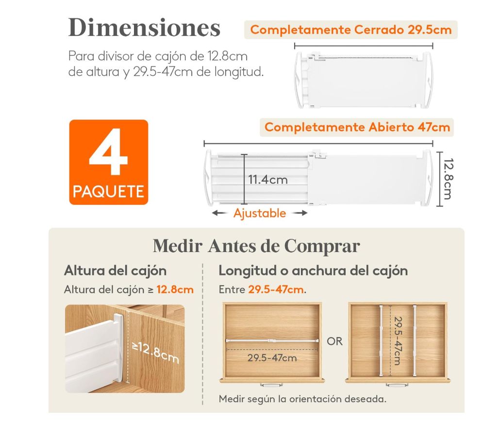 β¨ Divisores de plΓ‘stico extensible con altura de 13 cm y ancho regulable que permiten organizar de forma personalizada el contenido de cajones y armarios garantizando un ajuste seguro y estable
