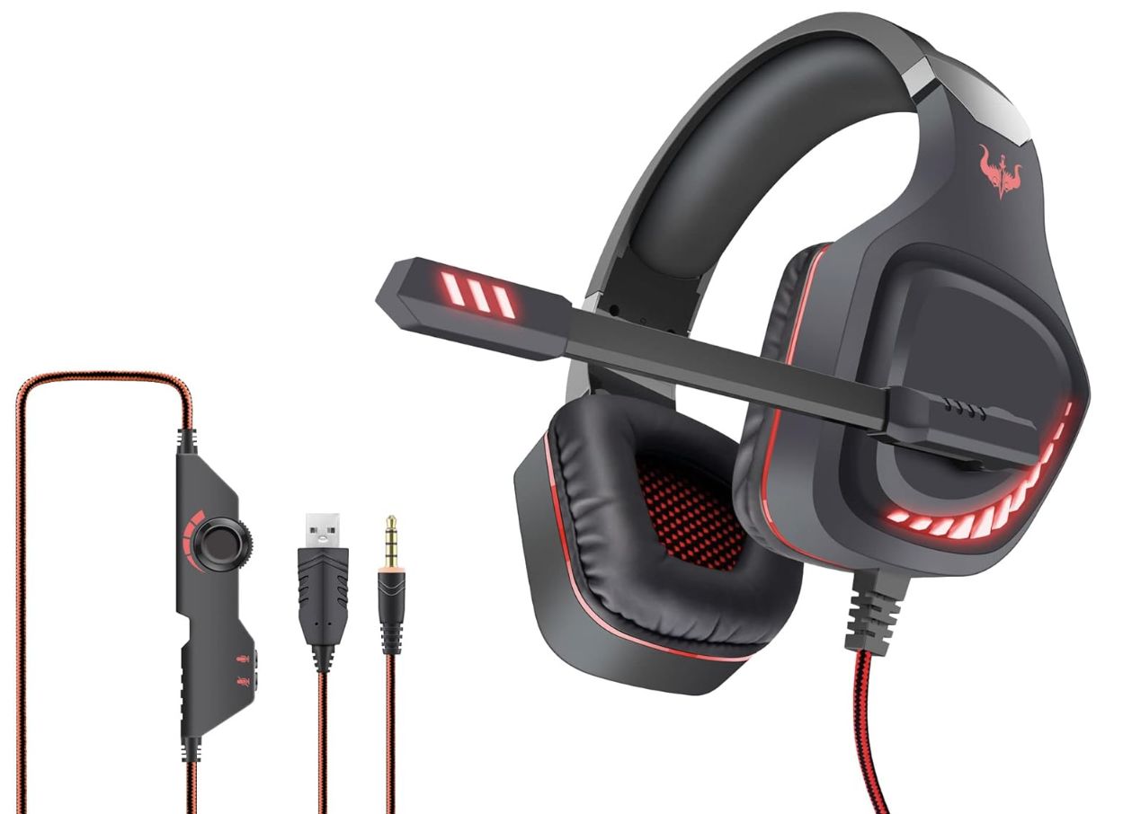 โจ Auriculares circumaurales con conexiรณn USB, aislamiento de ruido y diseรฑo con iluminaciรณn LED para uso gaming
